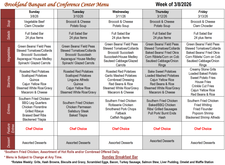 Banquet and Conference Center Buffet Hours and Pricing