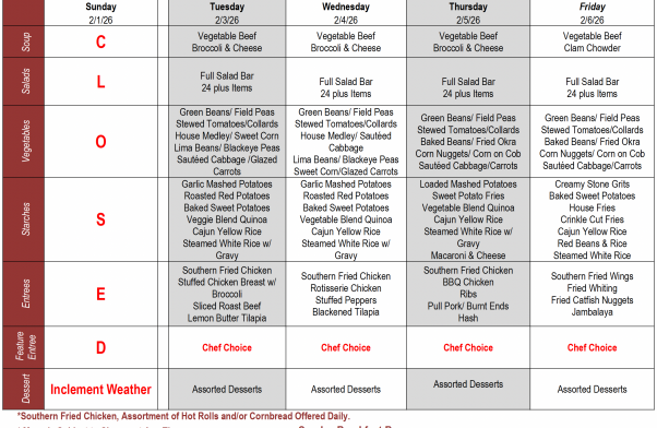 Buffet Weekly Menu