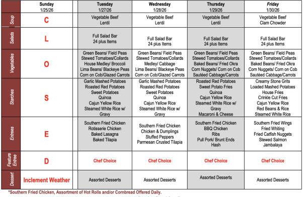 Buffet Weekly Menu