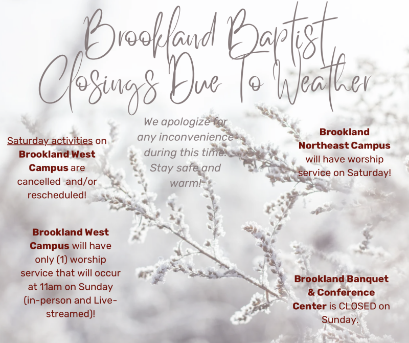 All Saturday activity has been cancelled and/or rescheduled for the West Campus